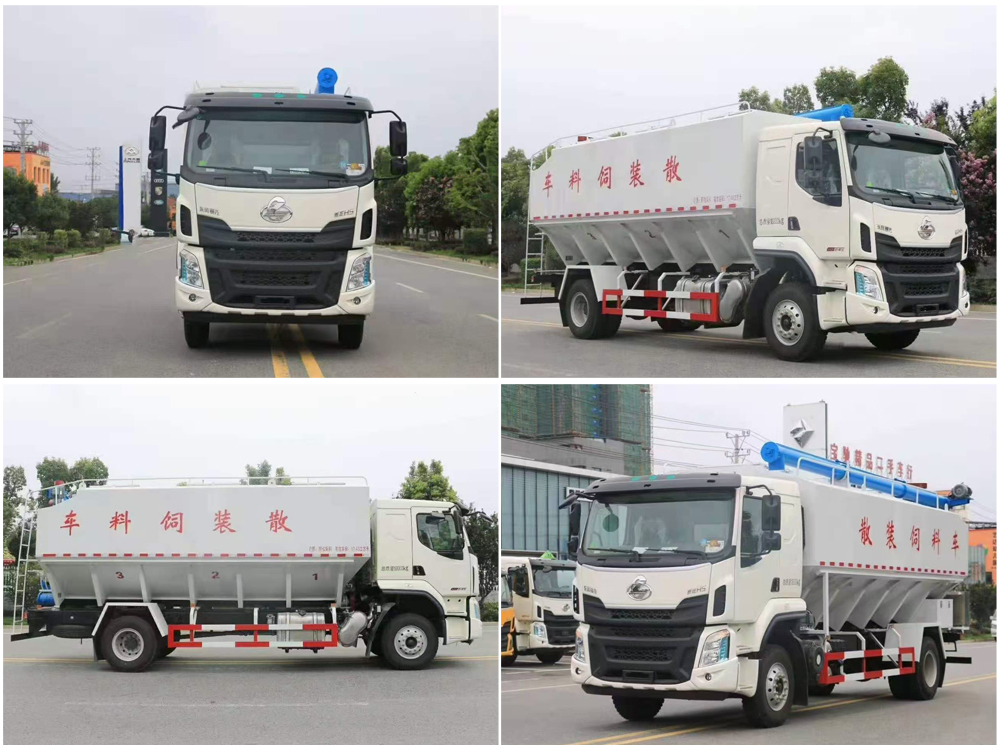 散裝飼料車,又名散裝飼料運(yùn)輸車,飼料運(yùn)輸車。結(jié)構(gòu)簡(jiǎn)單、性能可靠、輸送量大、操控方便、機(jī)動(dòng)性強(qiáng)、對(duì)物料無(wú)污染等特點(diǎn),廣泛應(yīng)用于各大中小型養(yǎng)殖企業(yè)的飼料的運(yùn)輸。主要用于從飼料廠向畜牧場(chǎng)、養(yǎng)禽場(chǎng)及飼料加工用戶運(yùn)輸散裝飼料成品或飼料生產(chǎn)原糧,同時(shí)它也可用來(lái)運(yùn)輸某些無(wú)腐蝕性粉粒狀原料,如制藥廠粉料和糧庫(kù)周轉(zhuǎn)。
