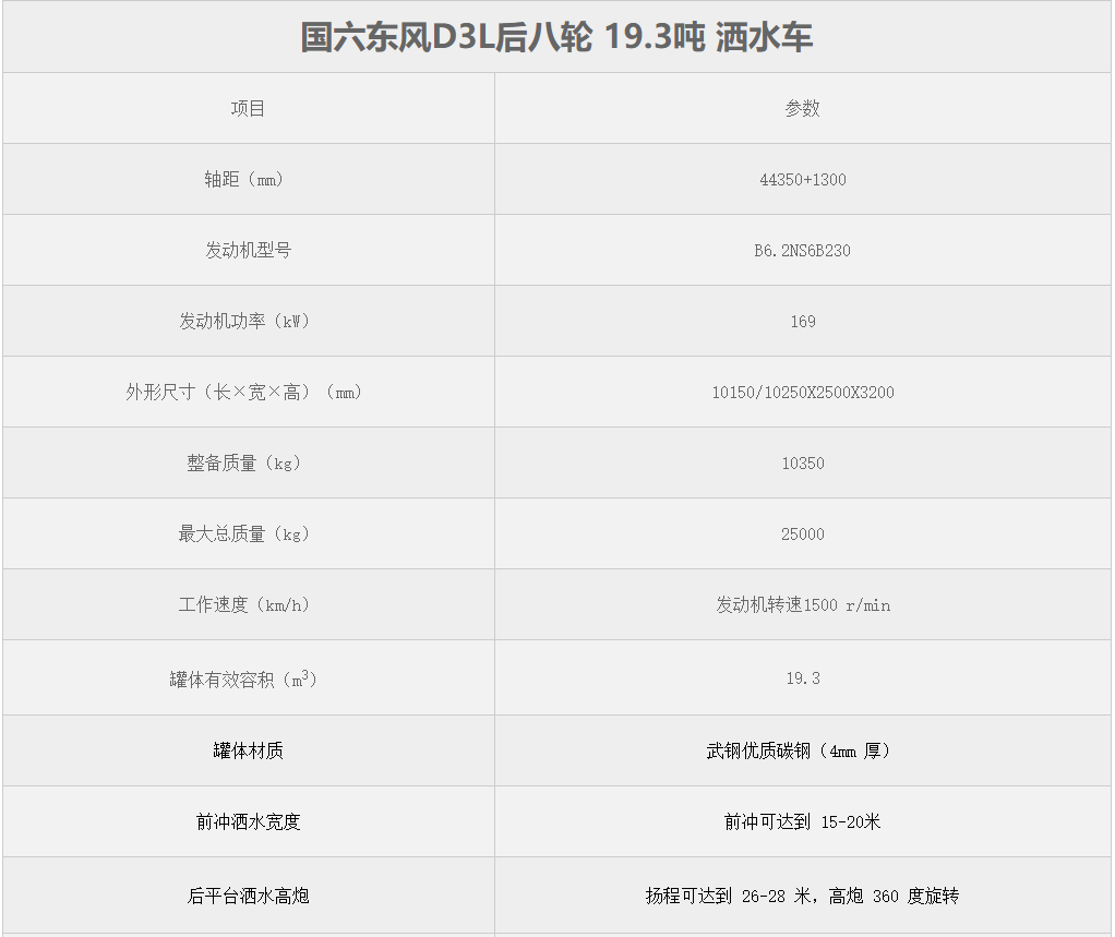 國(guó)六D3L后八輪19.3噸灑水車